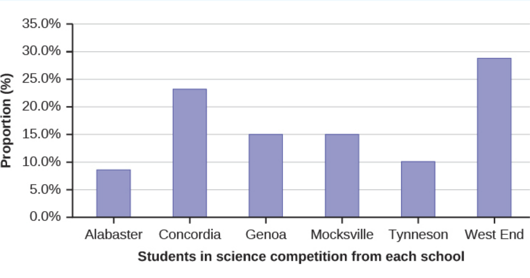 Use the data from the David County science competition supplied in Exercise . Construct a bar graph that shows the county-wide population percentage of students at each school.