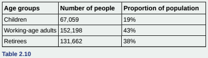 The population in Park City is made up of children, working-age adults, and retirees. Table shows the three age groups, the number of people in the town from each age group, and the proportion (%) of people in each age group. Construct a bar graph showing the proportions.