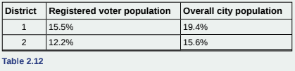 Park city is broken down into six voting districts. The table shows the percent of the total registered voter
