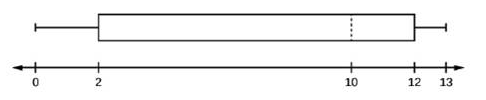 d) In the range 10-13, there is more information. This interval contains 50% of the data distribution. Since the interval 2-10 contains just 25%, the interval 5-10 will contain less than 25%.