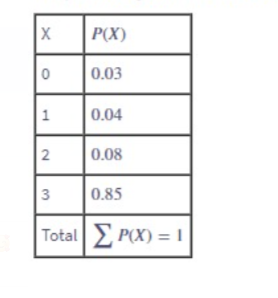 The following is the probability distribution table for random