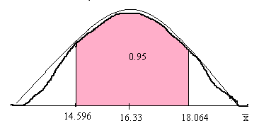 Thus the \(95%\) confidence level indicates that the mean offer price per share lies within \(14.596\) and \(18.064\). Let us represent the same in the student鈥檚 t-distribution curve