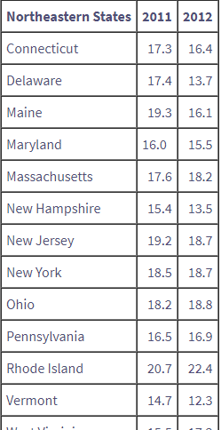 A politician asked his staff to determine whether the underemployment rate in the northeast decreased from 2011 to 2012 . The results are in Table 10.34.
