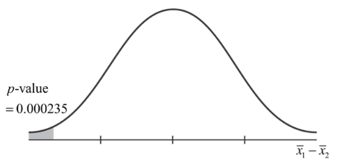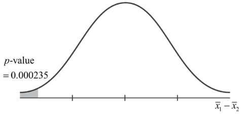 Sketch a graph of the situation. Mark the hypothesized difference and the sample difference. Shade the area corresponding to the p-value.