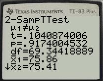 89. Suppose a statistics instructor believes that there is no significant difference between the mean class scores of statistics day students on Exam 2 and statistics night students on Exam 2. She takes random samples from each of the populations. The mean and standard deviation for 35 statistics day students were 75.86 and 16.91. The mean and standard deviation for 37 statistics night students were 75.41 and 19.73. The "day" subscript refers to the statistics day students. The "night" subscript refers to the statistics night students. A concluding statement is:
