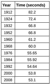 Table 12.22 gives the gold medal times for every other Summer Olympics for the women鈥檚 \(100-\)meter freestyle (swimming).