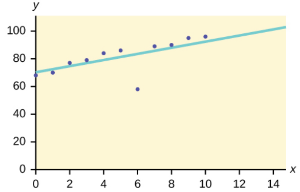 The scatter plot shows the relationship between hours spent studying and exam scores. The line shown is the calculated line of best fit. The correlation coefficient is .