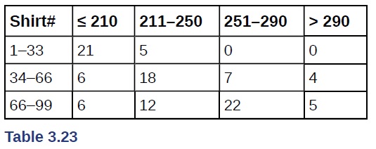 e. Find the probability that his shirt number is from 1 to 33 GIVEN that he weighs at most 210 pounds.