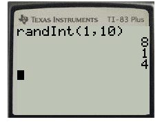 â—¦ For column 1, Press 5:randInt( and enter 1,10). Press ENTER. Record the number. Press ENTER 2 more