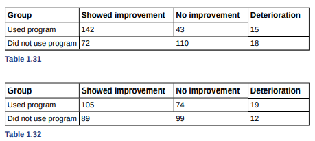 Use the following data to answer the next five exercises: A pair of studies was performed to measure the effectiveness of a new software program designed to help stroke patients regain their problem-solving skills. Patients were asked to use the software program twice a day, once in the morning and once in the evening. The studies observed stroke patients recovering over a period of several weeks. The first study collected the data in Table 1.31. The second study collected the data in Table 1.32.
