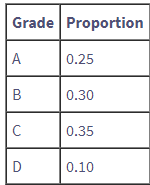 A teacher predict that the distribution of grades on the final exam will be and they are recorded in table 11.27
