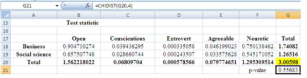 Conclusion: There is sufficient evidence to ensure that the distribution for personality types is the same for business majors and social science majors.