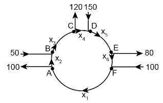 Intersections in England are often instructed as one- way 鈥渞oundabouts,鈥 such as the one shown in the figure. Assume that traffic must travel in the directions shown. Find the general solution of the network flow. Find the smallest possible value of \({x_6}\).