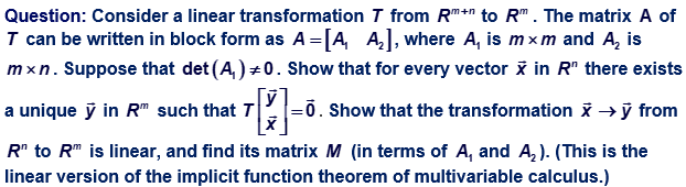 Question: Let A and B be 2 x 2 matrices with integer entries such that A,A+B,A+2B,A+3B, and A+4B are all invertible matrices whose inverses have integer entries. Show that A+5B is invertible and that it’s inverse has integer entries. This question was in the William Lowell Putnam Mathematical Competition in 1994. Hint: Consider the function F(t)=(det(A+tB))2 -1. Shows that this is a polynomial; what can you say about its degree? Find the values f(0), f(1), f(2), f(3), f(4),using Exercise 53. Now you can determine f(t) by using a familiar result: If a polynomial f(t) of degree <m has more than m zeros, then f(t)=0 for all t.