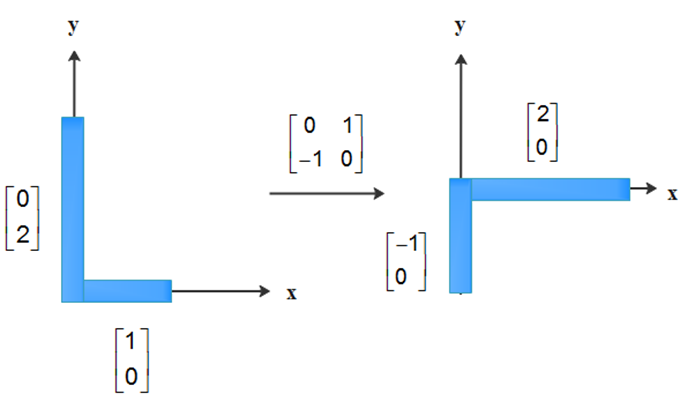 The matrix has clockwise rotation through , followed by a scaling of and is invertible with inverse .