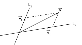 Consider two nonparallel lines in . Explain why a vector in R2 can be expressed uniquely as