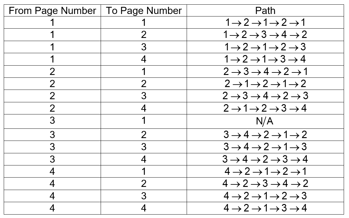 For the mini-Web in Example 2.3.4, find pages and such that it is impossible to get from page to page by following exactly four consecutive links. What does the answer tell you about the entries of?