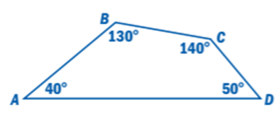 A quadrilateral has angle measures of and . Find the value of x.