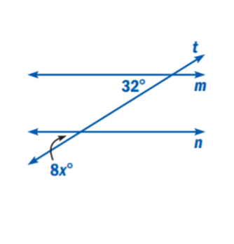 Use the diagram. For lines and to be parallel, what must the value of be?