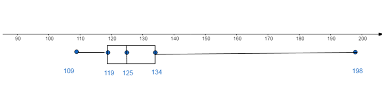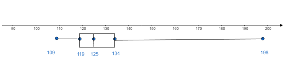 - Make a box-and-whisker plot for the data, excluding any outliers.