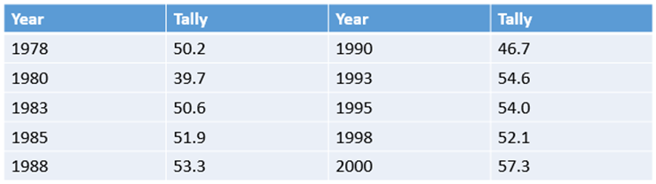 The table shows the number of visitors (in millions) to ski areas in the United States in 10 different years.