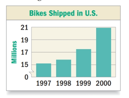The bar graph shows the number of bikes shipped in the U.S. over four years. Is the graph potentially misleading?