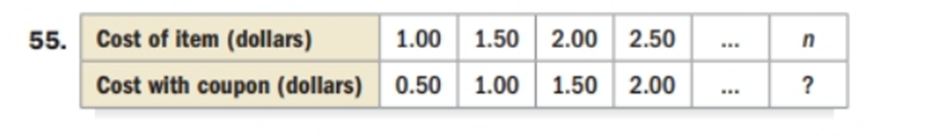 Logical Reasoning Describe the pattern shown in the table. Then write a variable expression involving n to complete the table. In the table, the three dots indicate that the pattern continues.