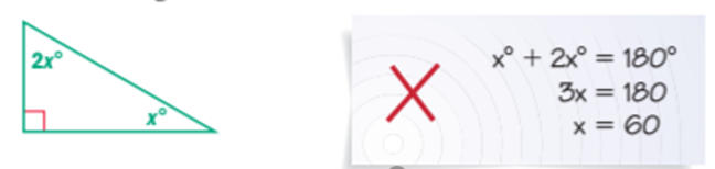 Describe and correct the error in finding the value of x for the triangle shown below.