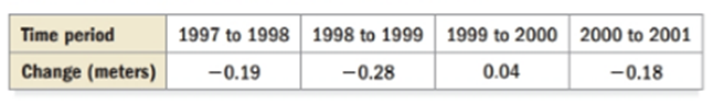 1 Find the overall change in the water level from 1997 to 2001 by adding the changes in the table.