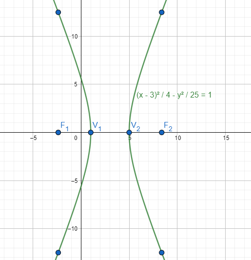 Finally, you get the vertices of the hyperbola by plugging in the center coordinates and the parameter