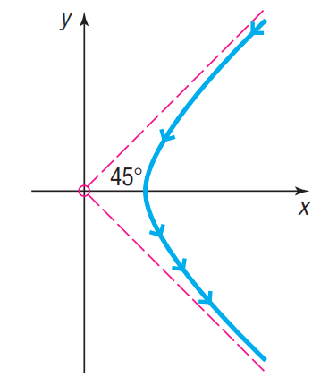 (b) If the vertex of the path of the alpha particles is cm from the center of the hyperbola, find a model that describes the path of the particle.