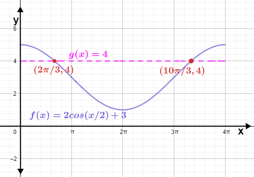 (b) Solve on the interval and label the points of intersection on the graph drawn in part (a).