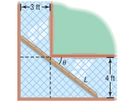 Carrying a Ladder Around a Corner Two hallways, one of width 3 feet, the other of width 4 feet, meet at a right angle. See the illustration. It can be shown that the length L of the ladder as a function of is