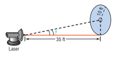 A laser beam is to be directed through a small hole in the center of a circle of radius 10 feet. The origin of the beam is 35 feet from the circle (see the figure). At what angle of elevation should the beam be aimed to ensure that it goes through the hole?