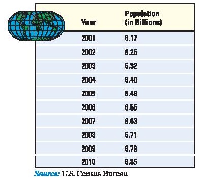 Population ModelThe following data represent the world population. An ecologist is interested in building a model that describes the world population.
