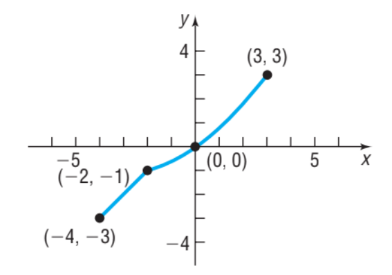 Determine whether the graph is that of a function by using the vertical-line test. If it is, use the graph to find: (a) The domain and range (b) The intercepts, if any (c) Any symmetry with respect to the x-axis, the y-axis, or the origin.