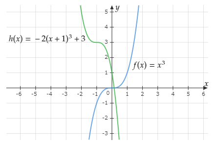 Graph the function using the techniques of shifting, compressing, stretching, and/or reflecting. Start with the graph of the basic function and show all stages. Be sure to show at least three key points. Find the domain and the range of each function. Verify your results using a graphing utility.