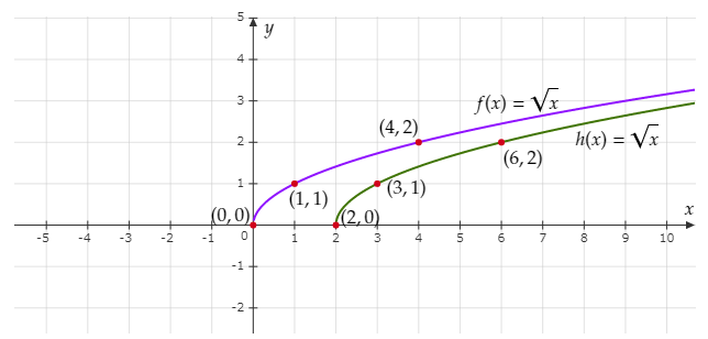 Graph the function using the techniques of shifting, compressing, stretching, and/or reflecting. Start with the graph of the basic function and show all stages. Be sure to show at least three key points. Find the domain and the range of each function. Verify your results using a graphing utility.