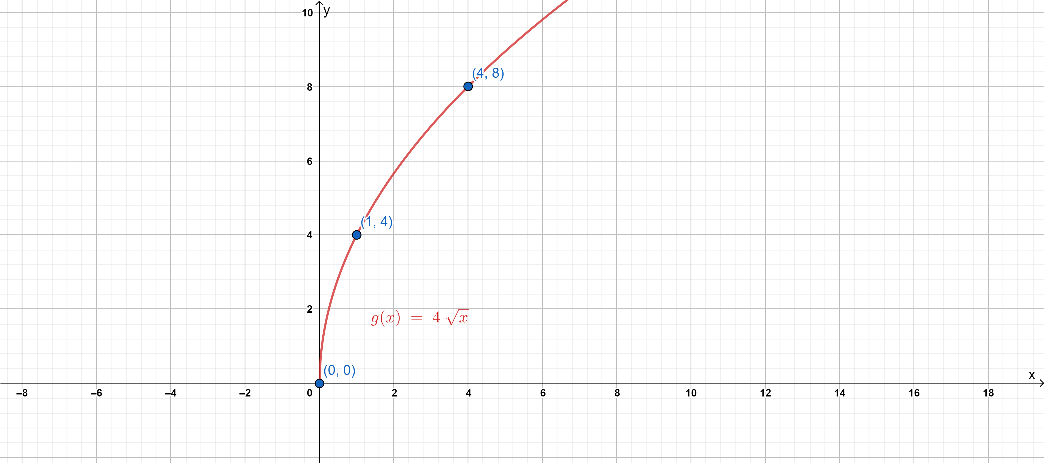 Graph the function using the techniques of shifting, compressing, stretching, and/or reflecting. Start with the graph of the basic function and show all stages. Be sure to show at least three key points. Find the domain and the range of each function. Verify your results using a graphing utility.