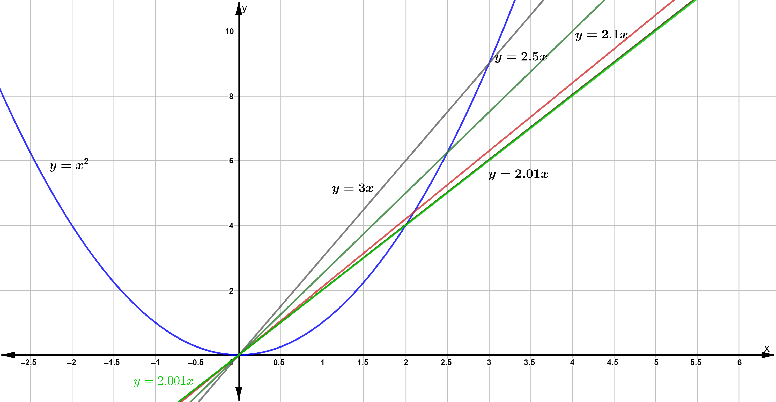 (h) What is happening to the slopes of the secant lines? Is there some number that they are getting closer to? What is that number?