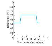 Thermostat Control Energy conservation experts estimate that homeowners can save to on winter heating bills by programming their thermostats to degrees lower while sleeping. In the given graph, the temperature (in degrees Fahrenheit) of a home is given as