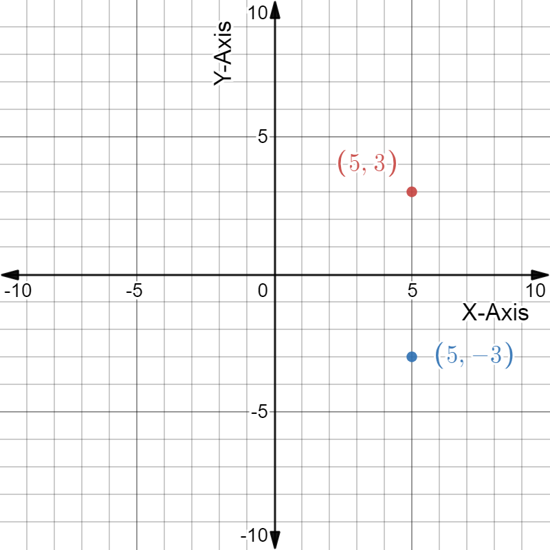 (a). (5,-3) is the point symmetric to (5,3) in the x-axis.