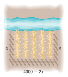 Enclosing the Most Area with a Fence: A farmer with 4000 meters of fencing wants to enclose a rectangular plot that borders on a river. If the farmer does not fence the side along the river, what is the largest area that can be enclosed? ( See the figure)
