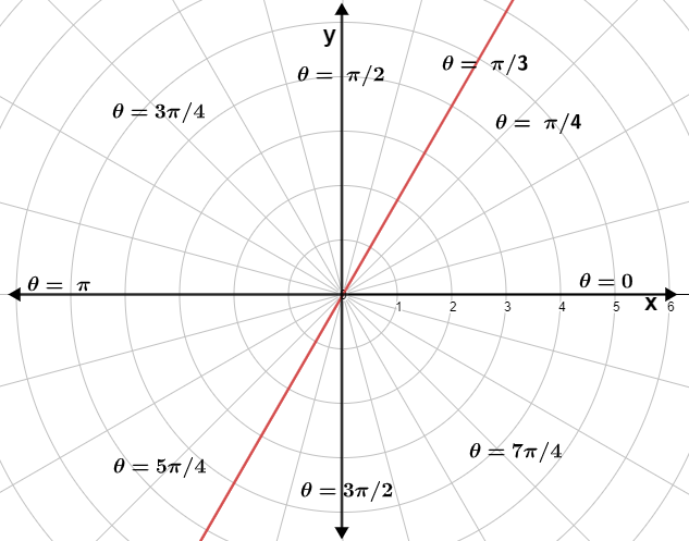 The equation is of a line passing through the pole making an angle of with the polar axis and the graph of the equation is