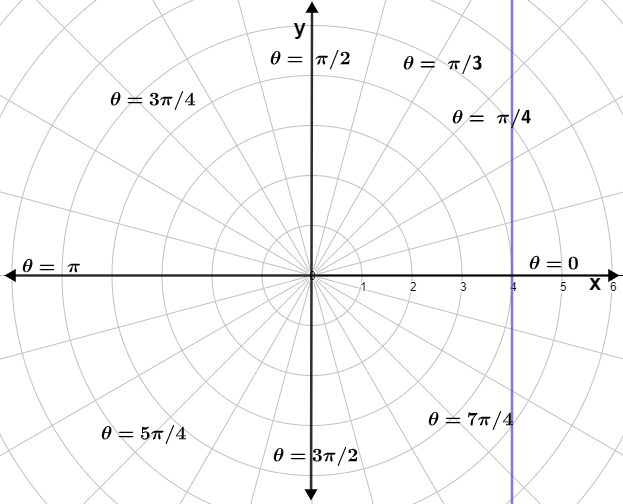 The equation is of a vertical lineunits right to the pole and the graph of the equation is