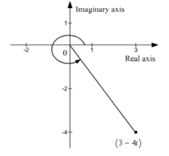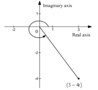 The given complex number is plotted in the complex plane.
