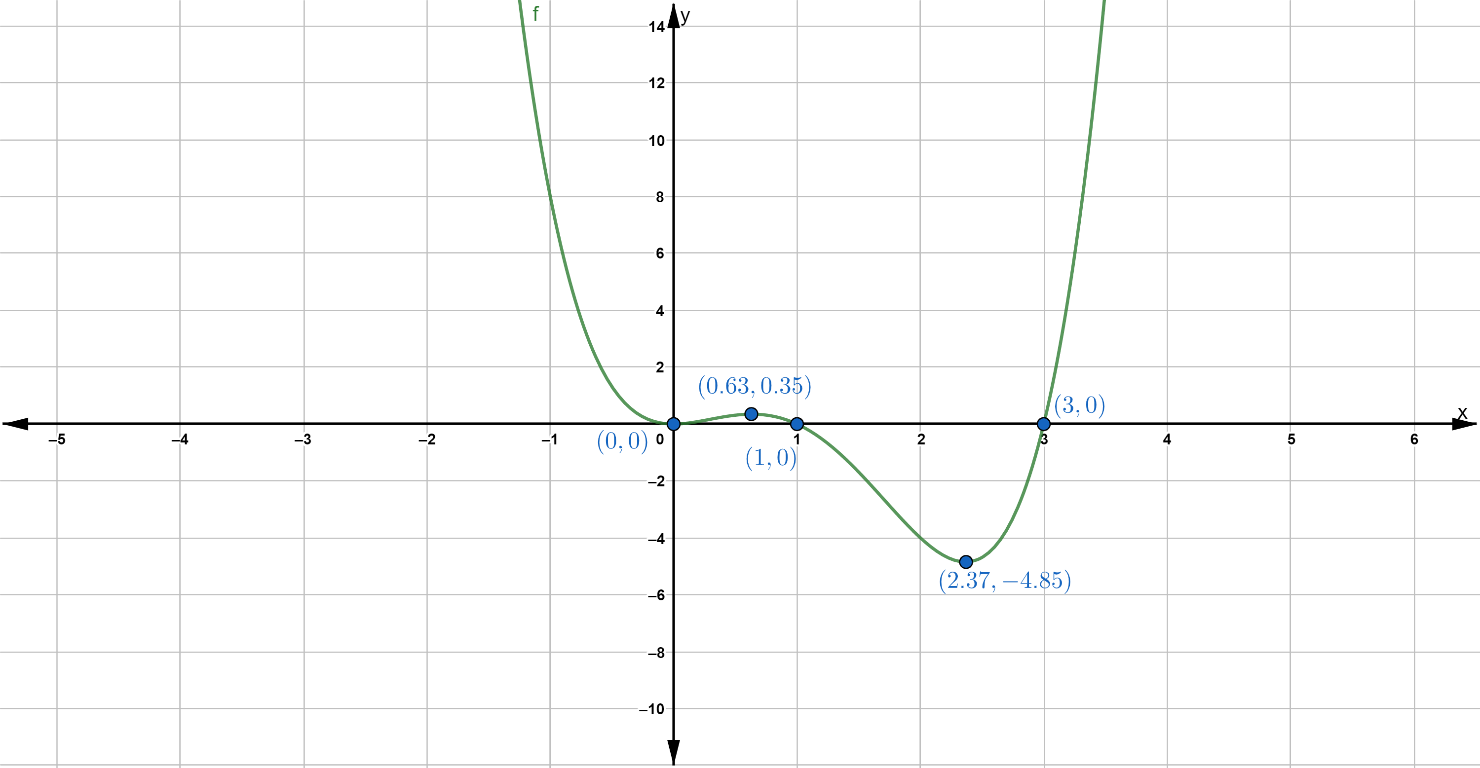 - The graph crosses the -axis at and .