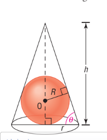 cones. Each sphere is of fixed radius R and will be enclosed in a cone of height h and radius r. See the illustration.Many cones can be used to enclose the sphere, each having