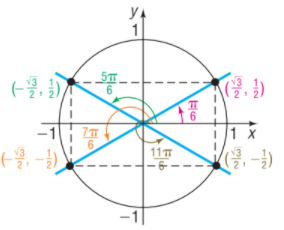 The exact values of the six trigonometric functions are , , , , and.