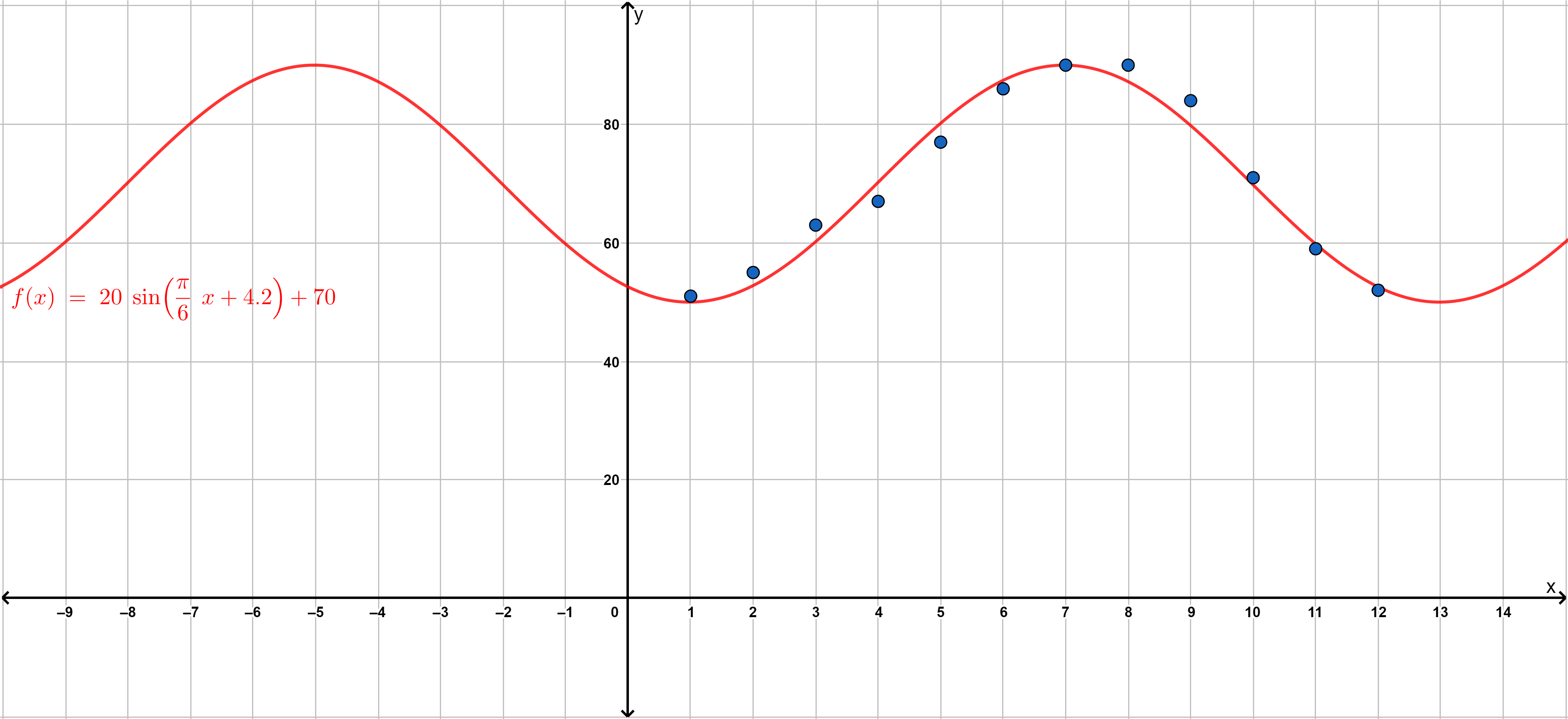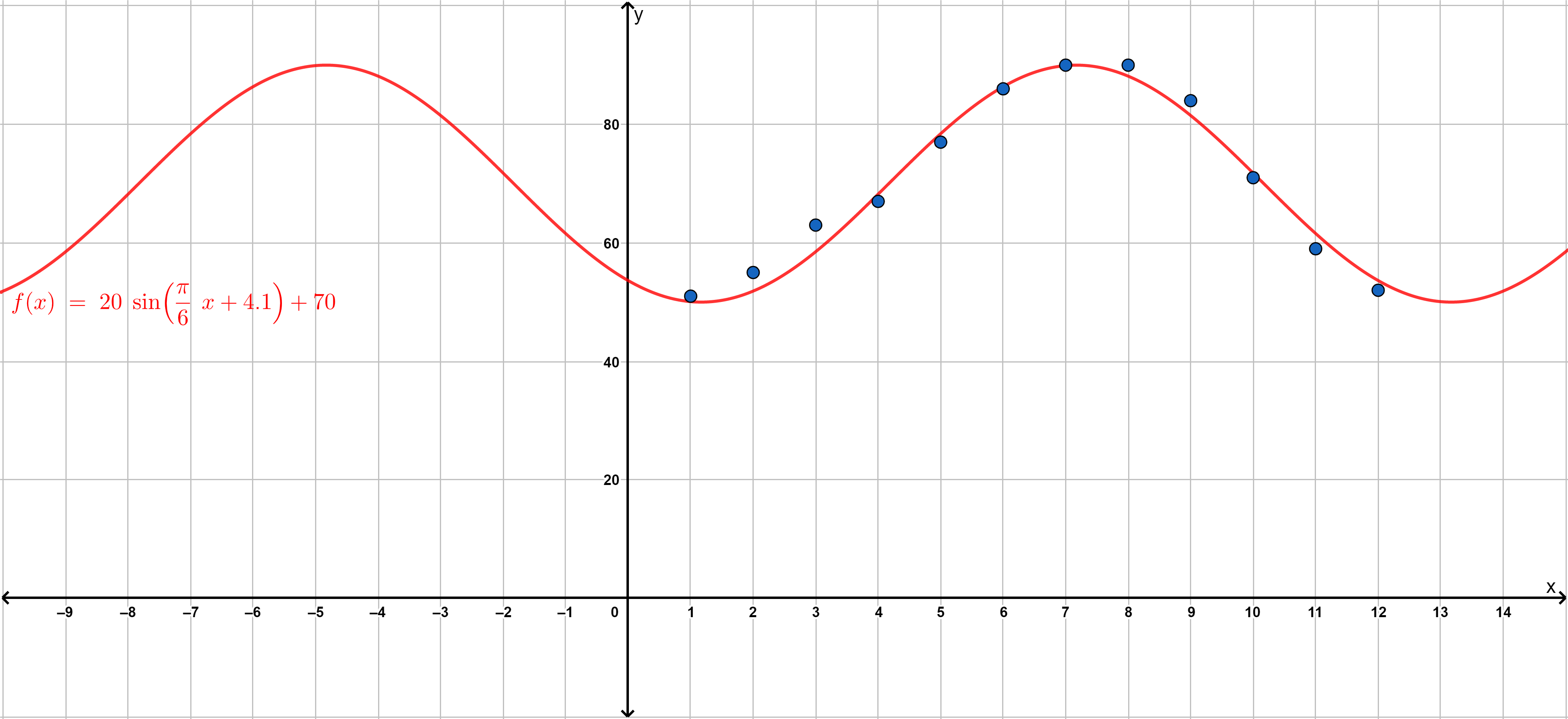 (c) Draw the sinusoidal function found in part (b) on the scatter diagram.